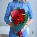 Букет из насыщеных ранункулюсов с экзотической зеленью. Нежный и восхитительный цветок похож на очаровательные розочки, а при полном раскрытии можно сравнить с эффектными махровыми маками. Яркий и небанальный букет.