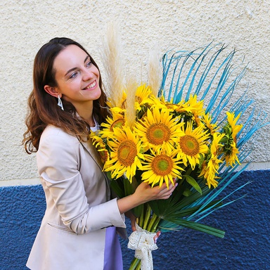 Букет из подсолнухов "Украинское лето" - подарит летнее настроение и сделает день ярким и красочным.