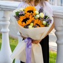 Букет с подсолнухом "Солнечное прикосновение" - это позитивные эмоции. Он прекрасно подходит тем, кто ценит красоту природы и жаждет ярких моментов в жизни.