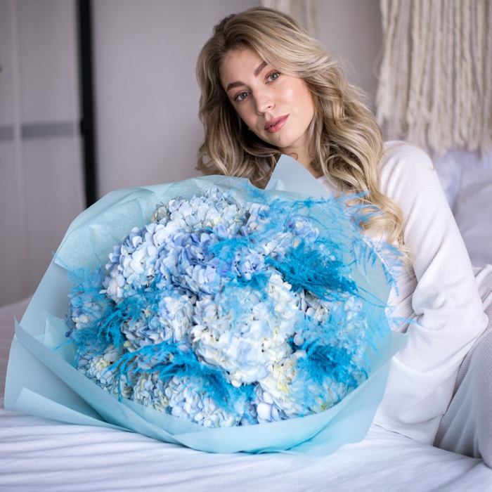 Этот изысканный букет из 13 голубых гортензий с аспарагусом – идеальный выбор для тех, кто хочет удивить необычным подарком, символизирующим нежность, гармонию и искренность. Голубые гортензии отличаются своей утонченной красотой и глубоким оттенком, который очаровывает с первого взгляда. Ажурный аспарагус добавляет букету легкости и воздушности, создавая невероятную гармонию цветов и форм. Выбирая букет в DonPion, вы можете быть уверены в качестве каждого цветка.