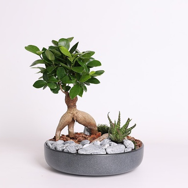Фикус Бонсай Ginseng от Don Pion — это элегантный акцент для вашего дома или офиса. Его выразительные корни и компактная крона придают интерьеру гармонию и ощущение природного баланса. Бонсай символизирует процветание и спокойствие, поэтому станет отличным подарком или стильным элементом декора. Растение неприхотливо в уходе и прекрасно подходит для комнатных условий.