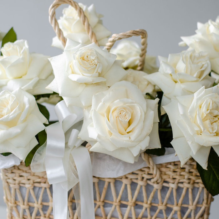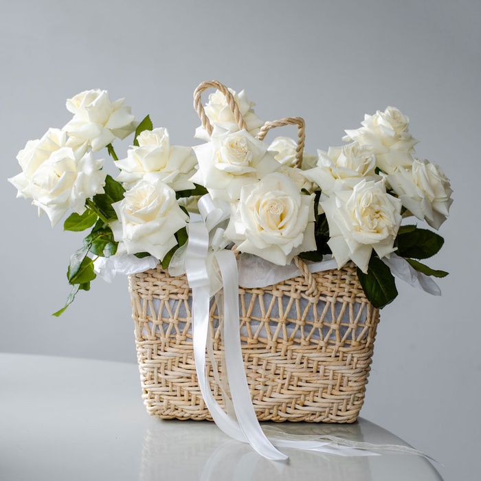 - Цветы в плетенной сумке "Белоснежная Плая Бланка"