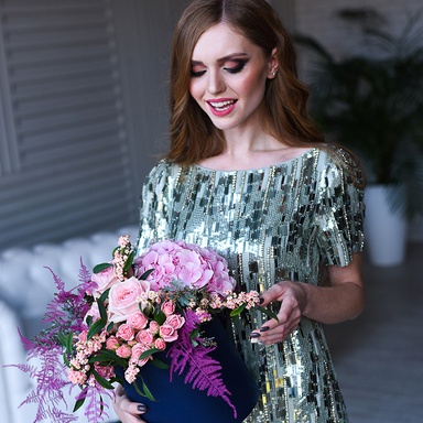 - Цветы в коробке "Розовый трепет"