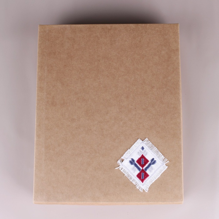 Блокнот идет в красивой картонной коробке с деревянной стружкой внутри.