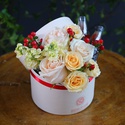Композиция в шляпной коробке - воплощение нежности и свежести. Порадует и подарит прекрасное настроение близкому человеку.
