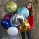 9 фольгованих кульок за формою коло. Діаметр кулі: 45 см.