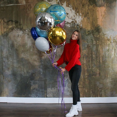 9 фольгованих кульок за формою коло. Діаметр кулі: 45 см.