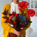 Творчий букет від флористів Don Pion. Екзотичний, оригінальний з осіннім настроєм. Букет підійде і жінці, і чоловікові.