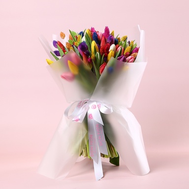 Тюльпан мікс - 51 шт, фалярис фарбований - 1,5 пучка