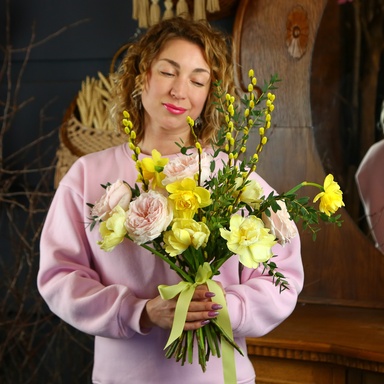 Букет «Квіткові краплі» — це ніжна та водночас яскрава композиція, що поєднує у собі витонченість нарцисів, сонячну енергію жовтих тюльпанів та романтичну красу рожевих троянд. Такий букет виглядає свіжо, легко й надихає, наче перші теплі дні весни. Кожна квітка гармонійно доповнює іншу, створюючи ефект «квіткових крапель» — легких, живих і сповнених емоцій. У магазині DonPion ми ретельно відбираємо тільки найсвіжіші квіти, щоб кожен букет довго радував своєю красою та ароматом.