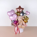 Коробка, фольговані кульки в асортименті, м'яка іграшка (колір в асортименті)