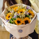 Букет із пшеницею та соняшниками – це символ літнього тепла, благополуччя. З таким букетом Ви подаруєте чудовий настрій.
