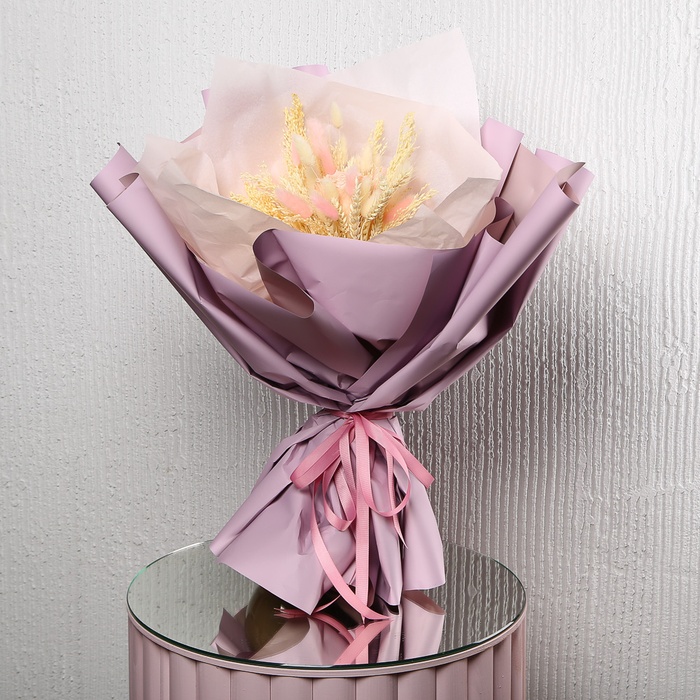 Троянда стабілізована, лагурус фарбований, овес, міскантус, упаковка