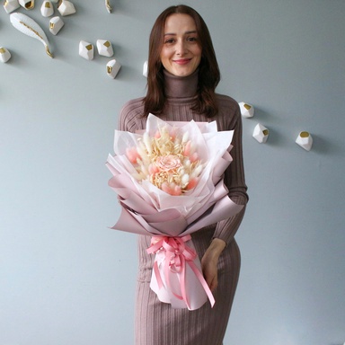 Даруйте собі атмосферу ніжності та природної краси з нашим чудовим букетом із сухоцвітів "Персикова Грація" від DonPion.