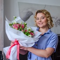 - Букет з 15 дабл тюльпанів та хелеборусу