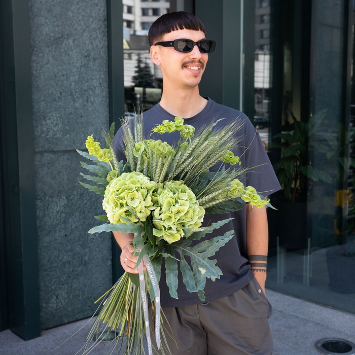 Букет з гортензією та молюцелою "Зелена свіжість" від DonPion — це ідеальний вибір для тих, хто цінує природну красу та витонченість. Зелена гортензія у поєднанні з молюцелою створює неперевершену композицію, яка підкреслює свіжість та природність.
