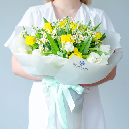 Букет "Ніжність і яскравість" від DonPion — це більше, ніж просто квіти. Це емоції, загорнуті в квітковий шедевр, який неодмінно підніме настрій і зробить день особливим.