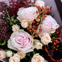 Троянда Pink Mobdial, троянла спрей, куэркус, астільба, скіммія в упаковці