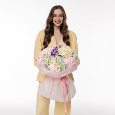 Букет-гігант «Захоплення» від DonPion — це неймовірна композиція з 15 мікс гортензій, яка вражає своїм об’ємом, барвами та витонченою красою. Гортензія відома своєю пишністю та ніжністю, а мікс відтінків робить цю композицію живою та неповторною, здатною створити святкову атмосферу в будь-якому інтер’єрі.