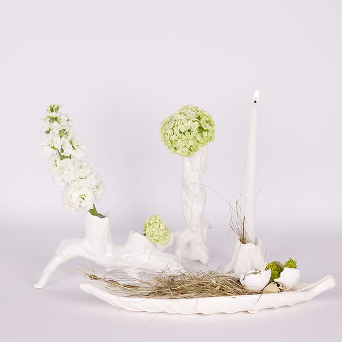 Занурте ваш простір у атмосферу затишку та елегантності за допомогою цього чудового набору керамічних свічників та листка. Кожен свічник має витончений дизайн, що надає йому неповторний характер. Набір включає три свічника різного розміру, що дозволяє створити чудовий композиційний ефект у вашому просторі.