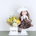 Інтер'єрна лялька з букетом - чудовий аксесуар, що надає вашому простору вишуканості та затишку. Ця неповторна композиція поєднує в собі ніжність ляльки та красу квітів, створюючи атмосферу тепла та гармонії.