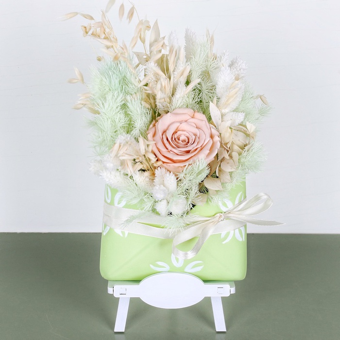 Конверт керамічний, троянда стабілізована, рускус, фалярис