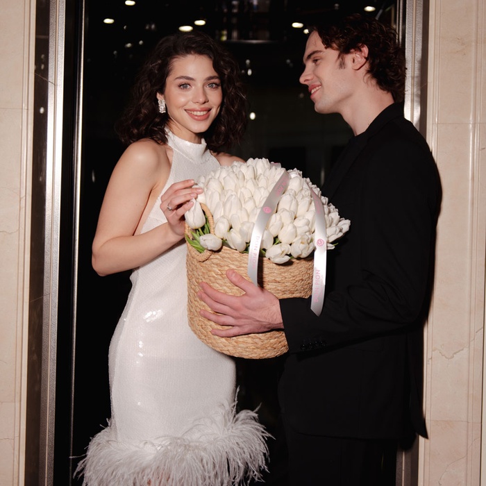 Кошик «101 білий тюльпан» стане яскравим акцентом будь-якого свята та залишить теплі спогади надовго.