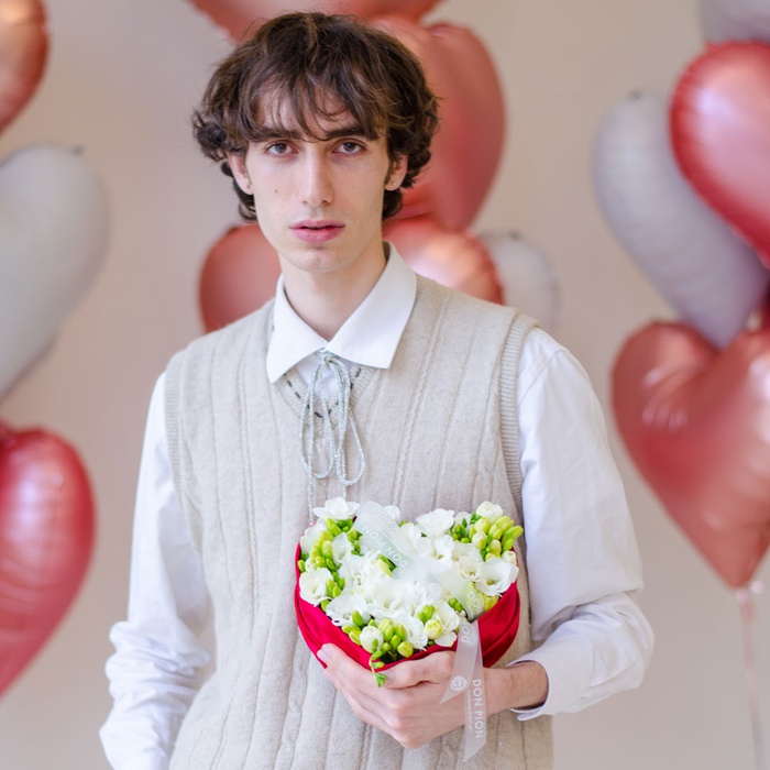 - Квіти у оксамитовій коробці "Серце фрезій"