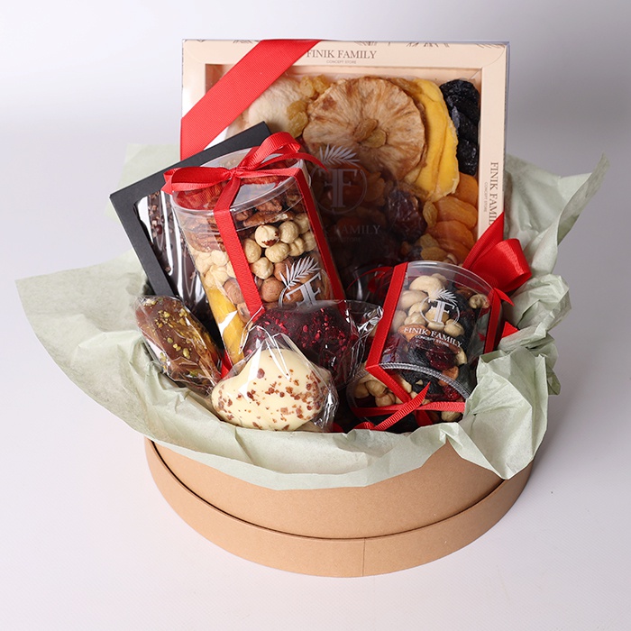 Коробка, сухофрукти, асорті максі, асорті в тубусі великий і маленький, десерт яблуко в шоколаді - 3 шт, плитка шоколаду від Spell
