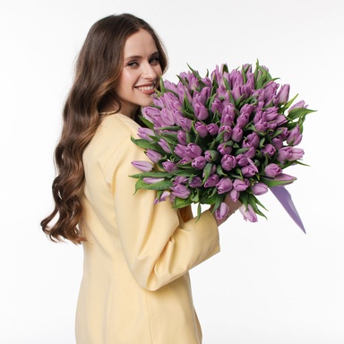 Обираючи 101 ніжно-фіолетовий тюльпан, ви обираєте високу якість, стиль та незабутні враження. Цей букет стане чудовим подарунком до Дня народження, річниці, важливого свята чи просто так — без причини, але з великою любов’ю.