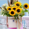 Яскрава композиція із соняшників зібрала у собі всі фарби літа. Така композиція залишить у душі отримувача найтепліші почуття.