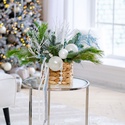 Зимова композиція з хвоєю, іграшками та свічками "Льодовий вогник"