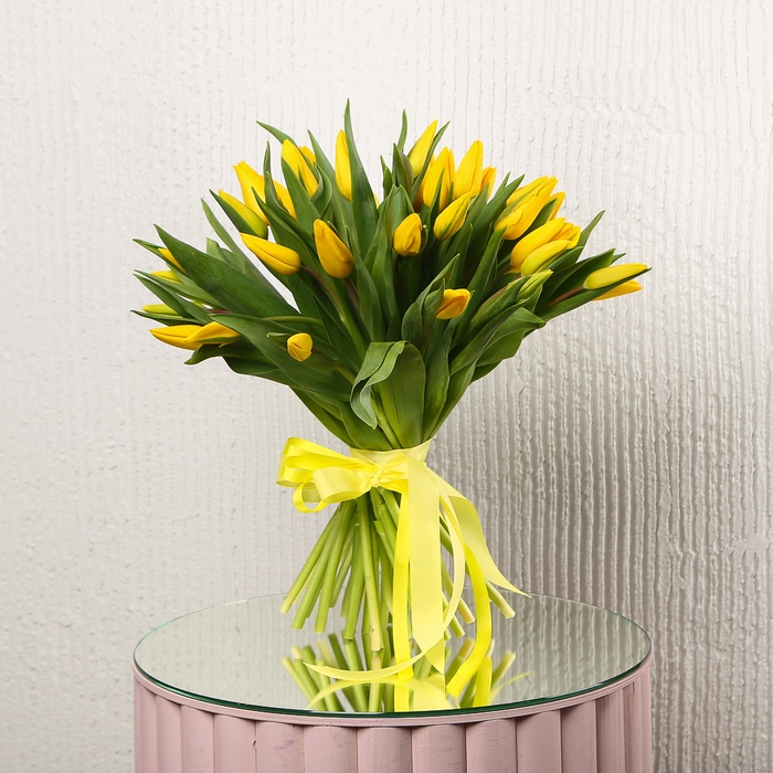 Подаруйте сонячний настрій разом із букетом 35 жовтих тюльпанів — нехай кожна квітка говорить про ваші щирі почуття.